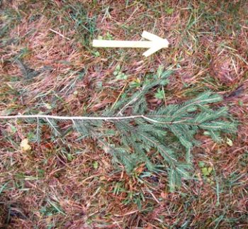 Er ist mindestens armlang und befegt, um ihn auffälliger zu machen und besser von durch Wind abgebrochenen Zweigen unterscheiden zu können. Er kann aufgehängt oder auf den Boden abgelegt werden. Er wird mit anderen Zeichen kombiniert.